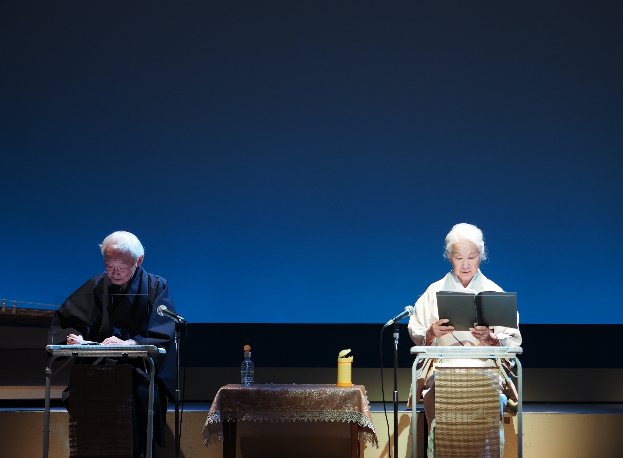 今年度の活動は、劇団区民劇場と、数年前から交流を深めてきた俳優座「かなの会」による合同公演。劇団区民劇場による「本所おけら長屋」はすみだゆかりの劇作家による地元を舞台にした作品です。コロナ対策として出演者同士の密を避けるため、舞台上に立つ人数を制限し、朗読劇形式で上演しました。また、かなの会による「春琴抄」は、朗読に琴とバイオリンが重なり、音楽ホールの特性を活した演出となりました。