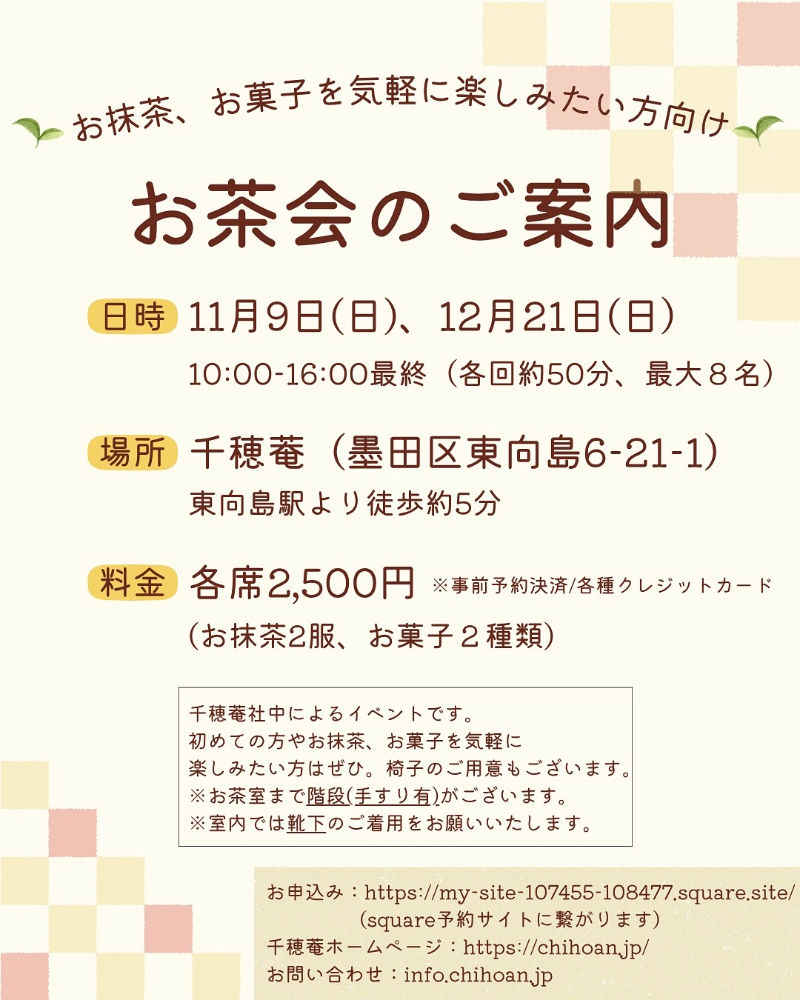 東向島で80年の歴史を持つ千穂庵にてお茶会を開催いたします。